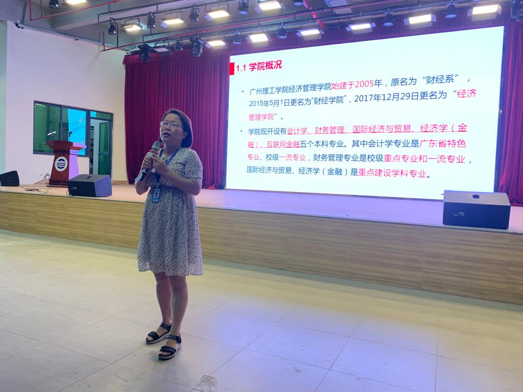 常务副院长李美珍代表我院向同学们表示热烈欢迎,重点介绍了学院的具体情况、专业教育、思政融入课堂和学业预警,让新生了解所在学院和所学专业的同时,帮助新生端正专业思想。李院长强调,同学们要端正政治立场,学好思政课程,我院老师也将继续深入挖掘课程思政元素,将中华优秀传统文化、社会主义核心价值观、民族精神等融入到授课中,寓理想信念教育、爱国教育、爱校教育于一体,充分将思政融入课堂。同时,她也鼓励同学们在完成学习任务的情况下积极参加社团活动,在劳逸结合之余,也丰富自己的生活,积极参加各种社团活动。