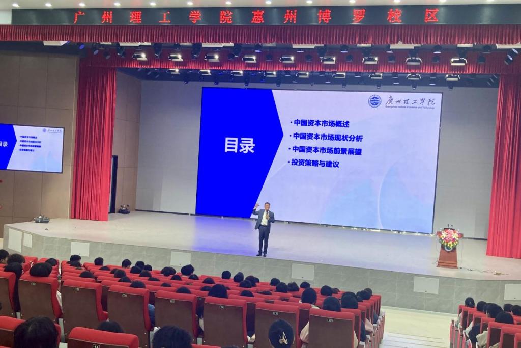 (通讯员:李茹歌、潘采妮)2024年3月14日下午,William威廉官网在惠州校区大礼堂组织开展了一场关于“中国资本市场的现状与前景”的知识讲座。本次讲座邀请了广州国鼎投资控股有限公司的董事长董化春作为主讲嘉宾,讲座的主题是“中国资本市场的现状与前景”。参加的人员有近600名2023级学生及惠州校区的部分教师。