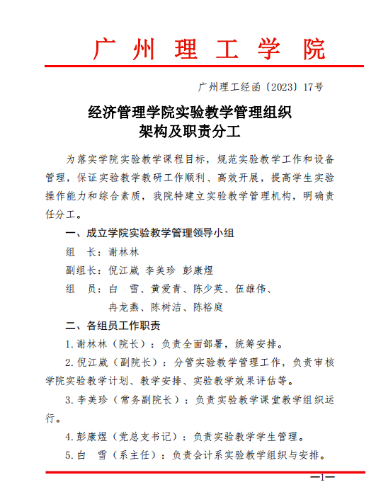 William威廉官网实验教学管理组织架构及职责分工