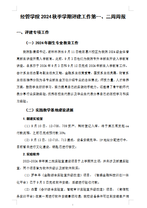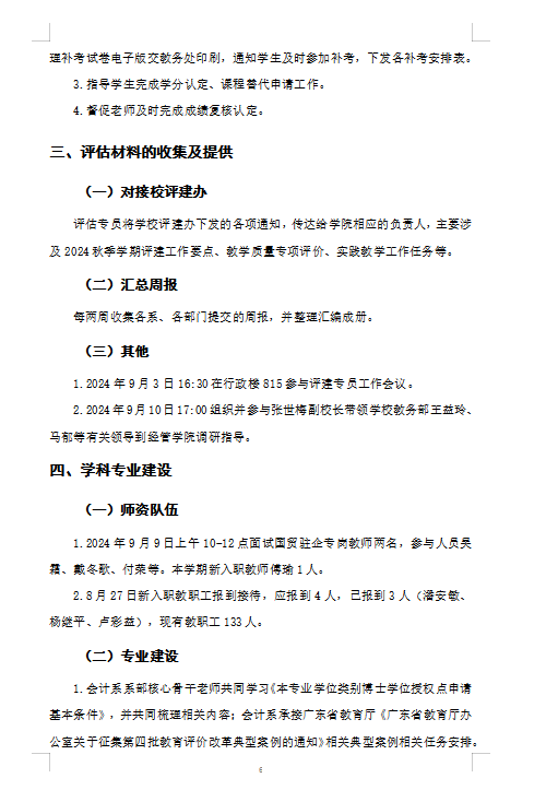William威廉官网秋季学期第一、二周评建报告