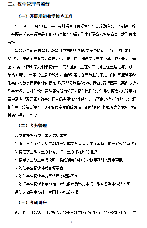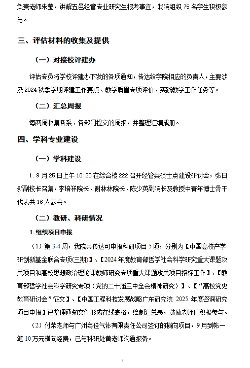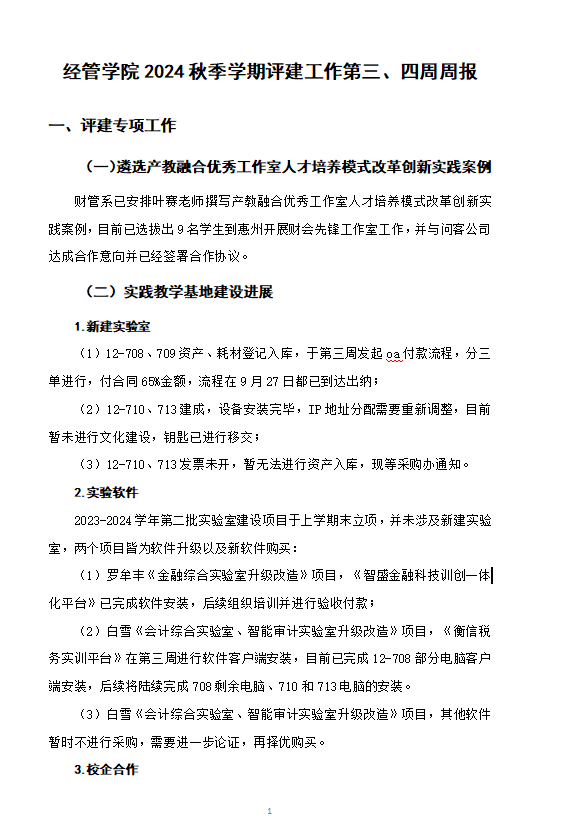 经管学院2024秋季学期评建工作第三、第四周周报