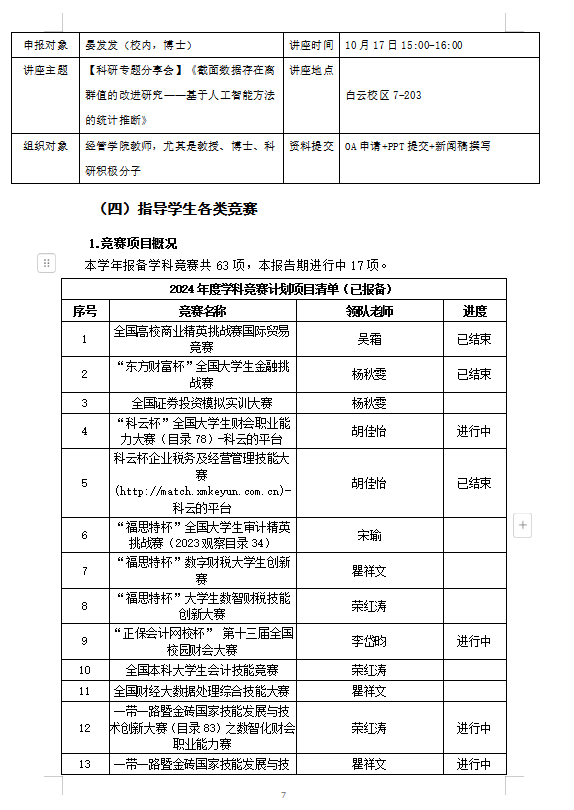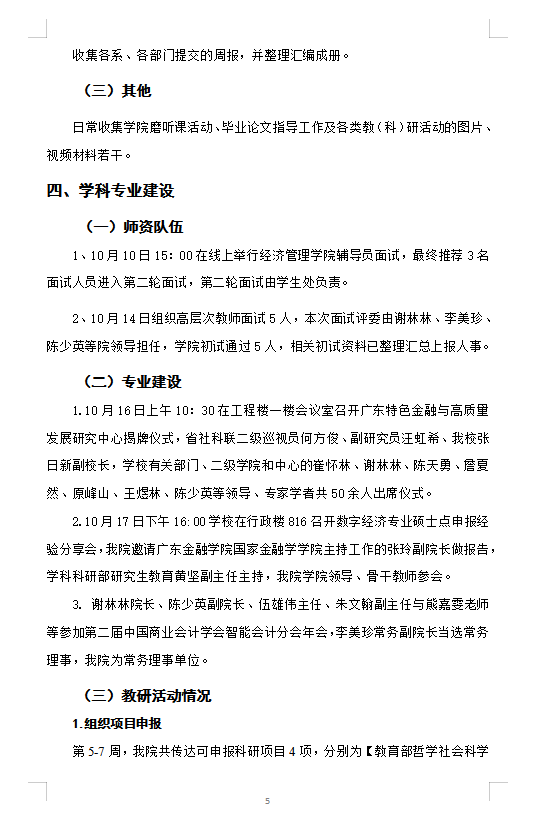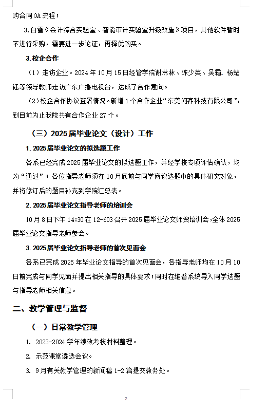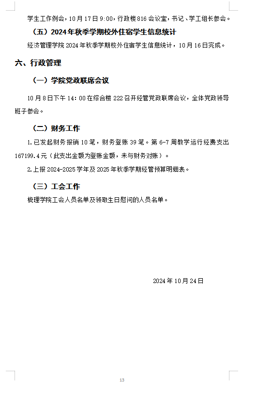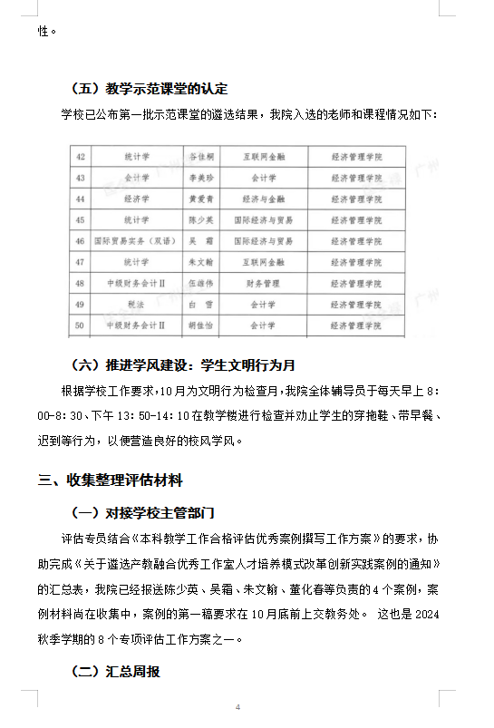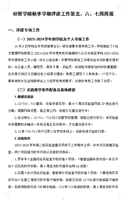 2024秋季学期经管评建工作第五、六、七周周报