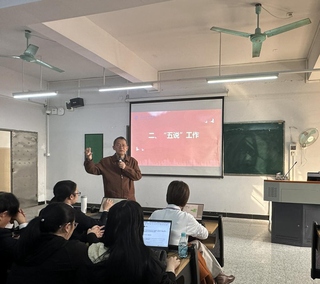 随后,陈少英副院长对近期教科研工作与组织学生的学科竞赛作安排,黄爱青主任作“AI赋能教学”的介绍。