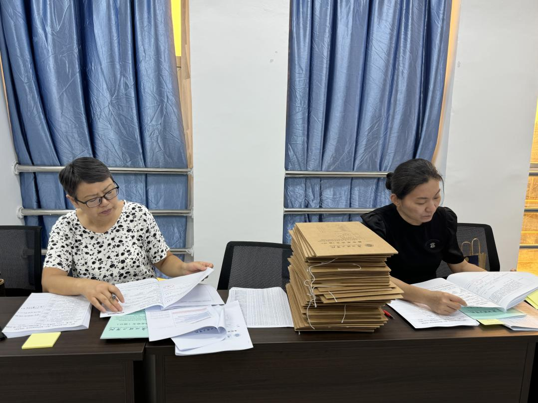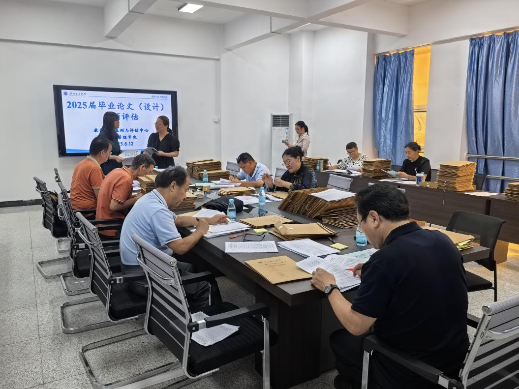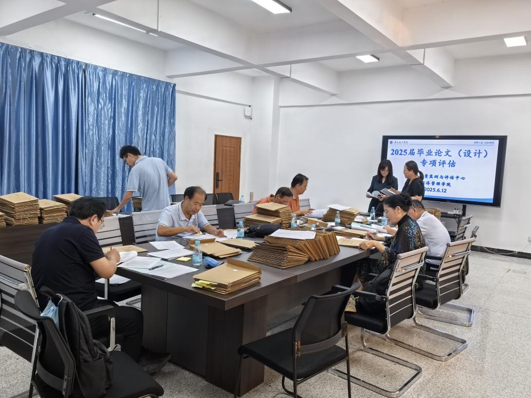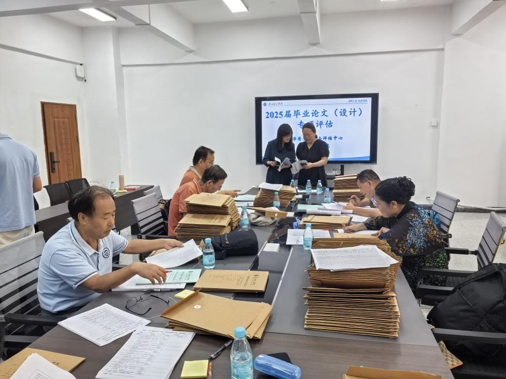 本次评估工作聚焦毕业论文全流程管理,从论文文本、拟题审批、任务务、开题报告、中期检查、指导记录表、答辩记录表、成绩评定表等八个关键环节展开细致检查。8 位专家分为 4 个小组,采取查阅资料、现场问询、交叉核验等方式,对学院毕业论文工作进行全方位 “把脉问诊”。在检查过程中,专家们秉持严谨认真的态度,逐份翻阅论文及相关材料,仔细核对各项环节的规范性和完整性,针对发现的问题及时与学院相关负责人和指导教师沟通交流,确保评估工作扎实有效。