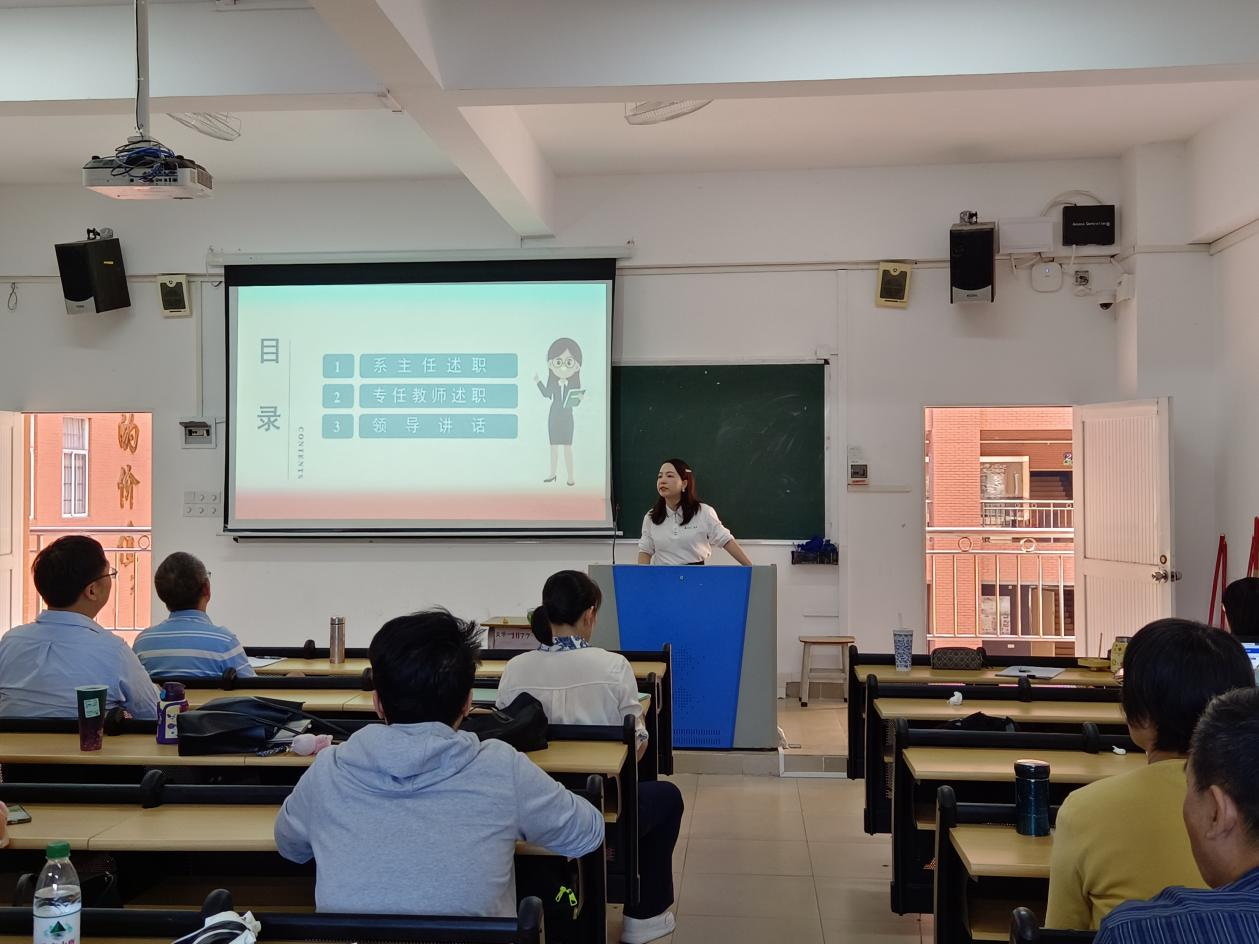 在述职会上,吴霜主任首先介绍了自己在过去一年在教学工作、毕业论文指导、教科研、学科竞赛指导、青年教师培养、班导师工作、校企合作等方面的工作,为国贸系的整体发展起到了良好的引领与示范作用。同时,总结过去一年国贸系在专业建设与师资发展方面取得的成果,对学院领导的支持和全系教师的辛勤付出及取得的成绩表示感谢。