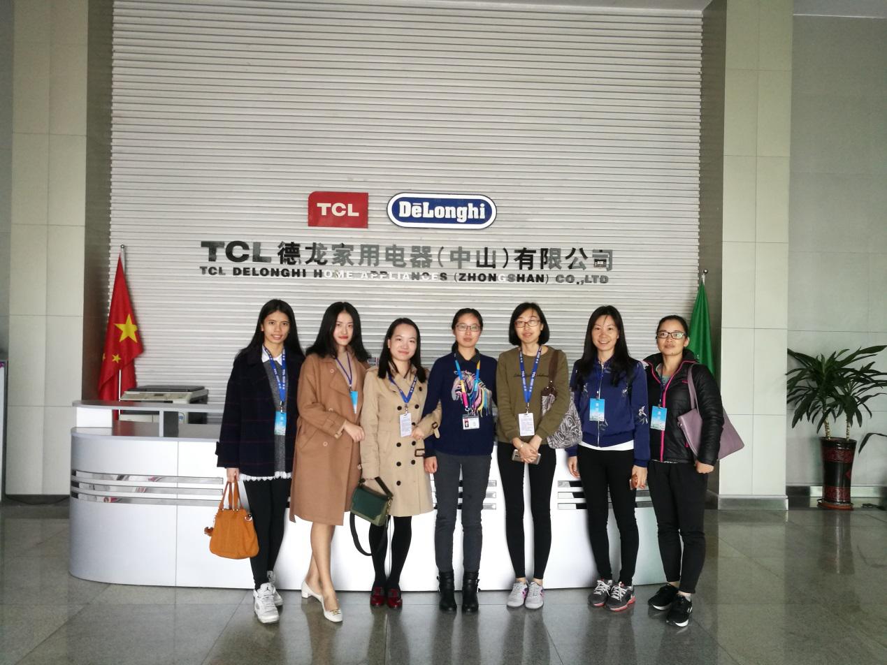 (通讯员陈少英)12月1日,我院国贸系师生一行六人在系主任佟哲老师的带领下,走进中山市知名企业TCL德龙家用电器(中山)有限公司进行参观学习。