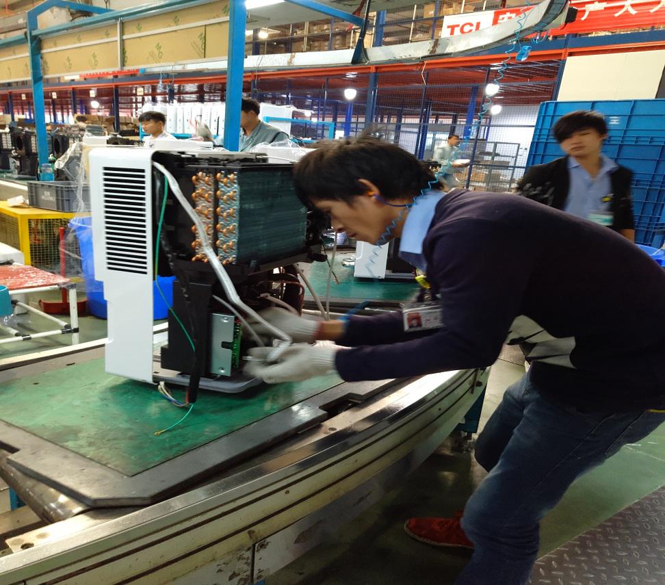 到达TCL德龙公司后,受到了公司外贸业务部负责人卓经理热情接待。在卓经理的陪同下,参观了公司办公室及厂房车间。卓经理边走边介绍,给我们详细介绍了公司基本情况,生产状况,公司外贸市场,企业文化等内容,带领我们亲身感受了TCL德龙公司厂房里的全自动化生产线和规范化作业过程。