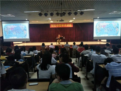 (通讯员 陈天勇)6月14日晚,华南师范大学李继东教授应邀到我校做了题为《“一带一路”与中国对外开放新战略》的学术讲座。经济学、国际贸易专业400余名师生齐聚学术报告厅聆听讲座,副院长张志红、陈天勇和专业建设指导委员会主任杨润生教授、经济系主任倪江崴等老师出席讲座,讲座由国贸系主任佟哲老师主持。