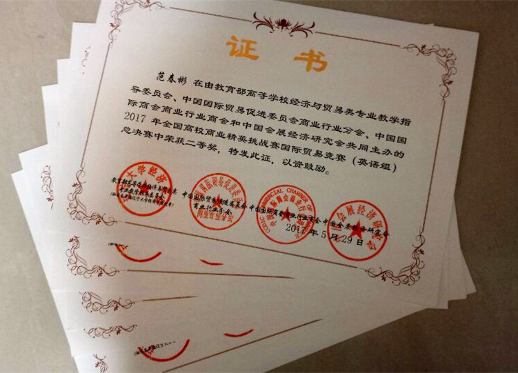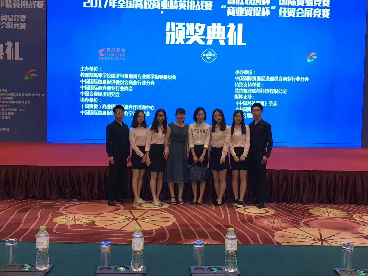 (通讯员 佟哲)5月25日至29日,2017年“全国高校商业精英挑战赛国际贸易竞赛”在宁波国际会展中心举行。我校财经学院由罗彩文、林玥妍、郭嘉俊、范春彬、梁映彤和龙绮霞六位同学组成的参赛队伍表现优异,荣获全国总决赛二等奖。
