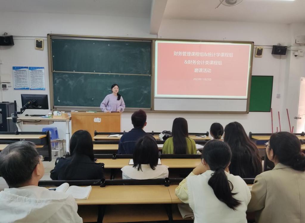 本次会议主要围绕以下三个核心议题展开:一是根据磨课计划,由新教师罗崴老师通过公开课展示教学成果,其他教师对授课过程中存在的亮点及不足进行探讨,并提出合理的教学建议,实现老带新、传帮带的目的。二是所有老师通过交流本周课堂教学过程中存在的问题,并针对这些问题进行深入探讨,分享自己的经验和解决方法,共同总结经验,实现教师队伍的集体成长。三是统计学课程组的老师与财务管理课程组及财务会计类课程组的老师们共同探讨之前磨课的共性问题,各个课程组的老师们根据自己的授课心得,对于如何安排教学内容以匹配学生的实际需求、采用何种课堂管理技巧以激发学生的学习积极性、如何建立起有效的课堂反馈机制等进行了积极的交流。